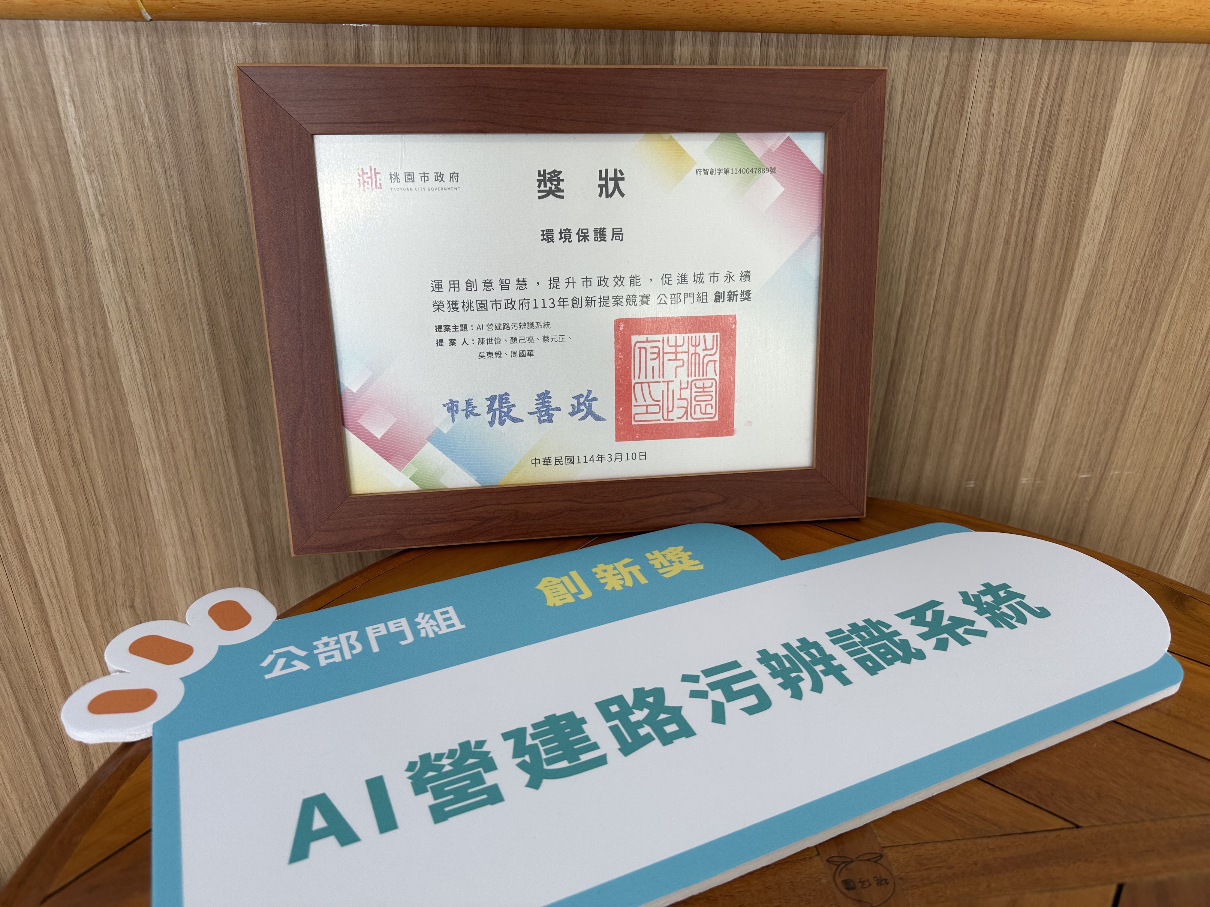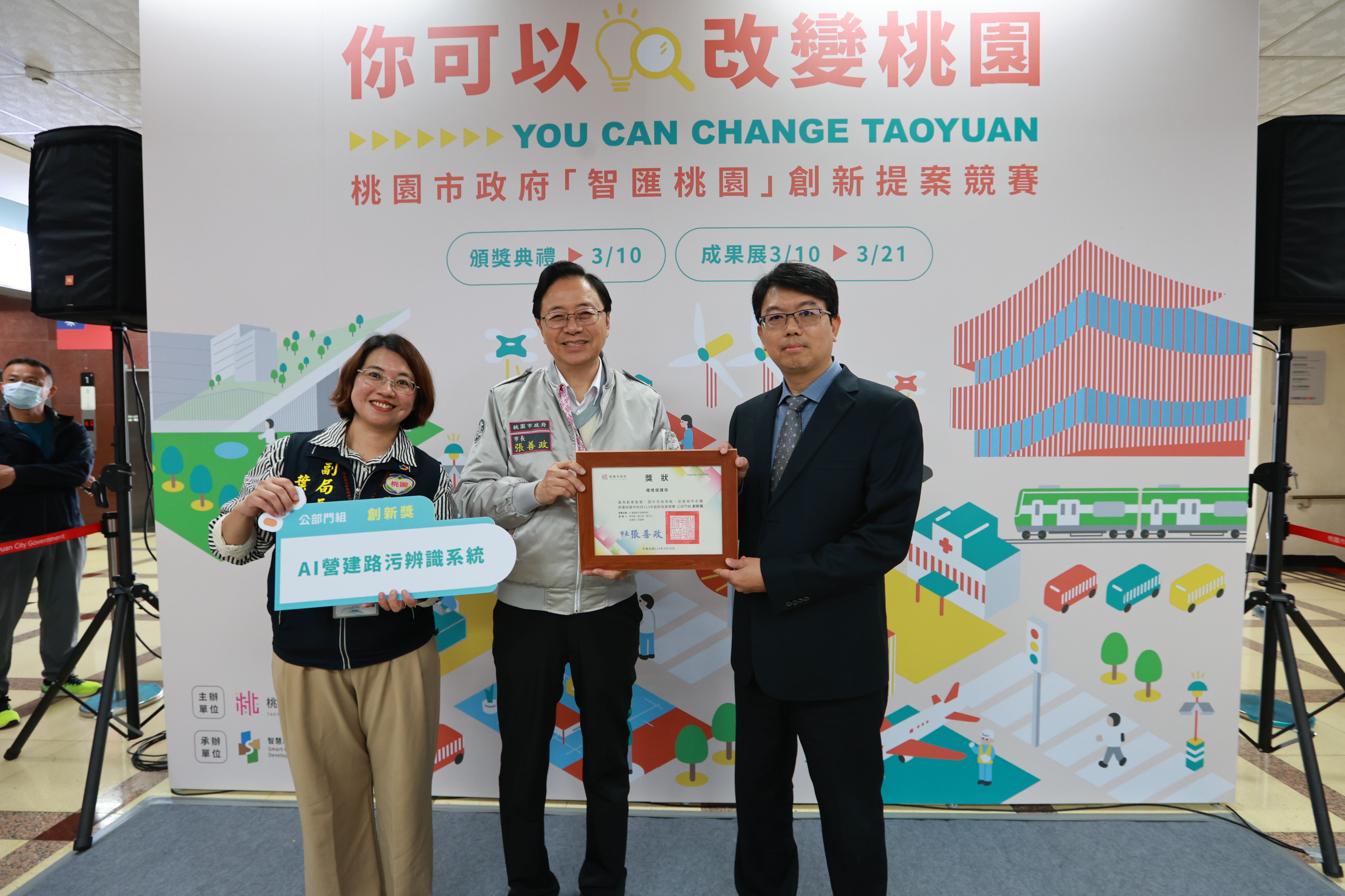 桃園市環保局為實現智慧桃園決心,積極參與「113年度智慧桃園創新提案」競賽,共有3項創新提案脫穎而出,其中「AI 營建路污辨識系統」獲創新獎,「科技物聯網應用於工業區水污染防治計畫」及「智慧環境應變:跨部門協作機制強化突發事件應對能力」2案獲點子獎,在這次提案競賽中獲得評審高度青睞,也是市府中獲獎最多的機關,展現了環保局在創新科技應用上的卓越表現。