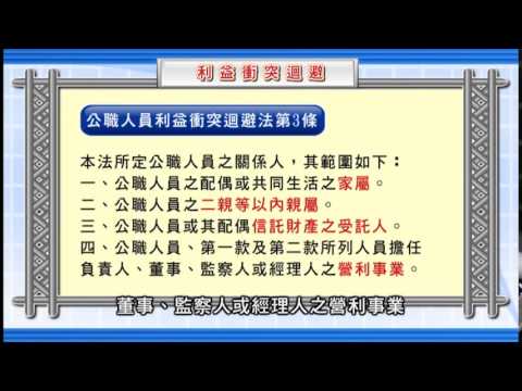監察院公職人員財產申報處製作「五分鐘,懂利衝」短片,介紹關係人申請補助過三關,以避免違反利衝法而受裁罰,內容分為三大單元:「是否為關係人」、「補助資訊是否公開」、「有無填寫身分關係揭露表」。